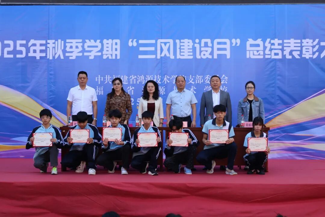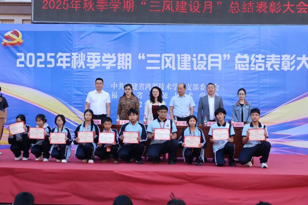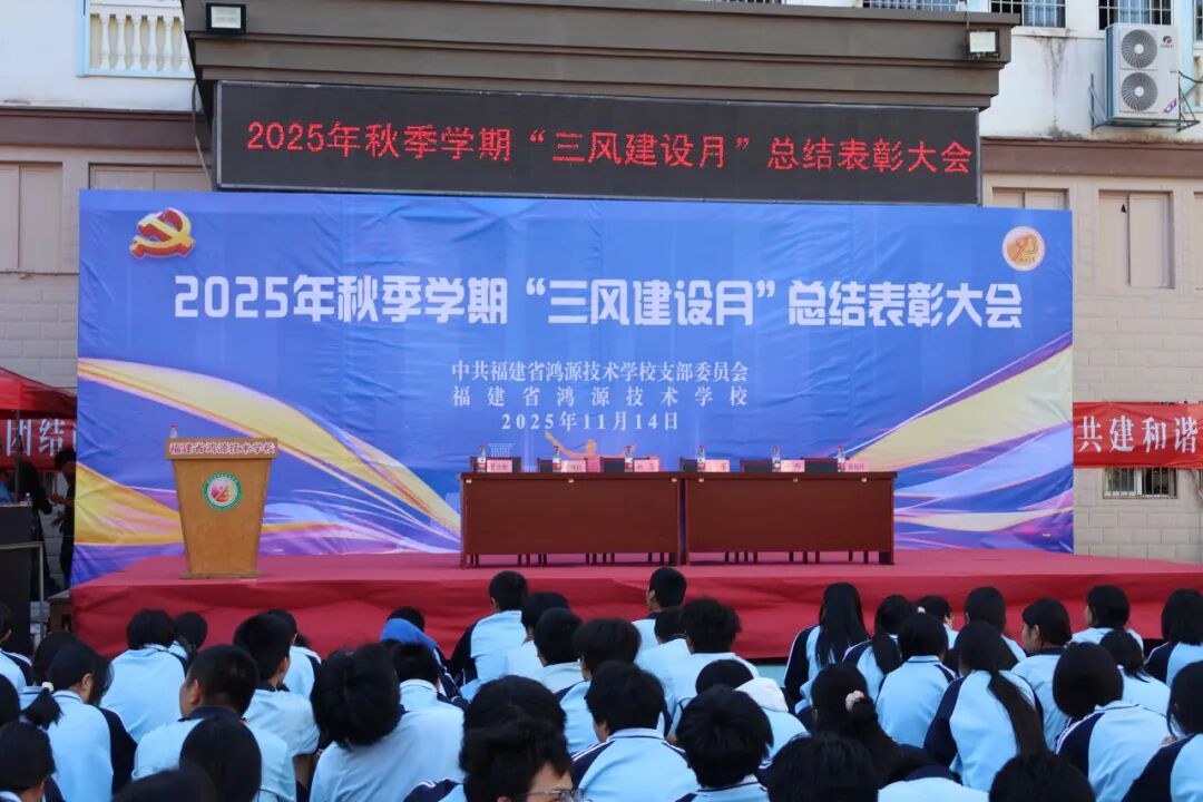 为全面总结“三风建设月”活动经验,巩固深化建设成果,表彰先进典型,进一步凝聚师生力量,福建省鸿源技术学校于11月14日隆重举行2025年“三风建设月”总结表彰大会。在家校级领导与全校师生共同见证此次盛会。